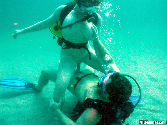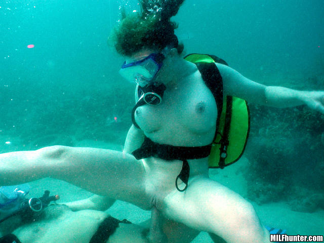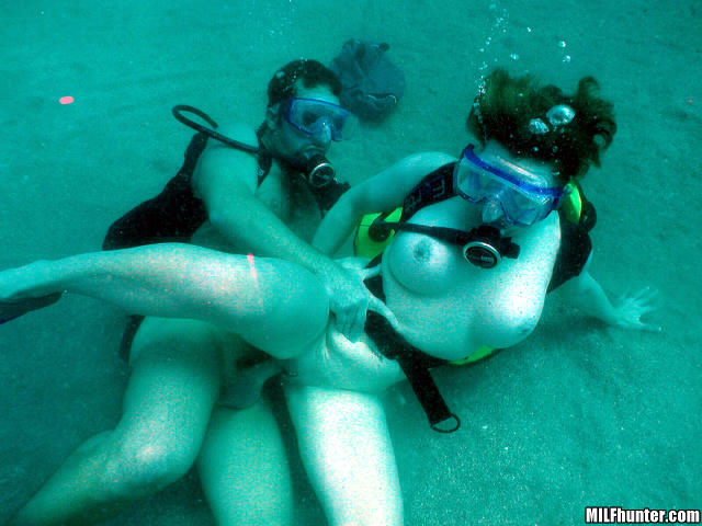 Now its Hunter's turn to try and hold his position as Jessica mounts him, breathing tank and all, and rides him like a seahorse. Jessica's own ability to keep her balance on his cock is also impressive.