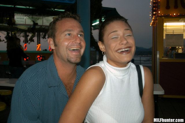 Where in the world will the MILFHunter go next? Well the next update Hunter and his cameraman head down to the local amusement park to try out the rides. It appears though that they were prevented from filming there as the movie begins at Satine's front door. The picture series however runs through the full pick up with Satine sitting at a table observing the families around her enjoying themselves. Hunter sits beside the brunette, extends the invitation and before long they are back at her place.