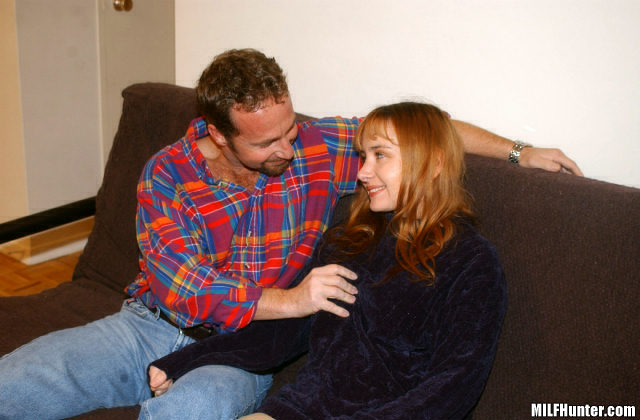 With Bob directing Hunter has Laura's bra down within minutes and starts licking on some very natural breasts. Her pants now off she reaches into his jeans and pulls out an already stiffening cock which she rubs the head of on her hardening nipples. Now that brings a smile to her face!